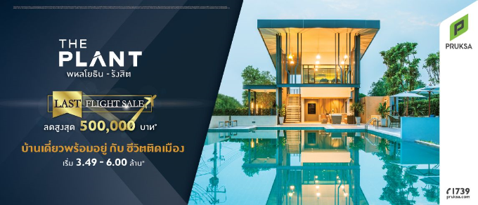 เดอะ แพลนท์ รังสิต - คลองหลวง" Last Flight Sale ลดสูงสุด 500,000 บาท* บ้านหลังใหญ่ โซนหน้าสวน เริ่ม 3.39 - 6.00 ล้านบาท*