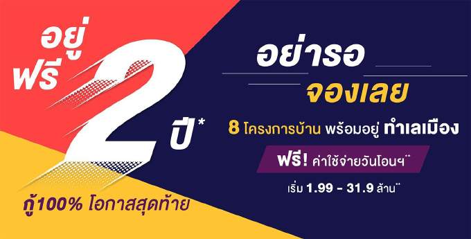 https://sansiri.com/thai/ โปรโมชั่น : "อย่ารอ จองเลย"อยู่ฟรี 2 ปี* กู้ 100% โอกาสสุดท้าย 8 โครงการบ้าน พร้อมอยู่ ทำเลเมือง ฟรี! ค่าใช้จ่ายวันโอน* เริ่ม 1.99 - 31.9 ล้านบาท*