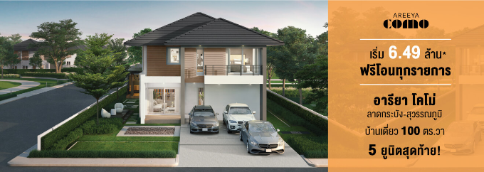 อารียา โคโม่ ลาดกระบัง - สุวรรณภูมิ" บ้านเดี่ยว 100 ตร.ว. 5 ยูนิตสุดท้าย เริ่ม 6.49 ล้าน* ฟรีโอนทุกรายการ