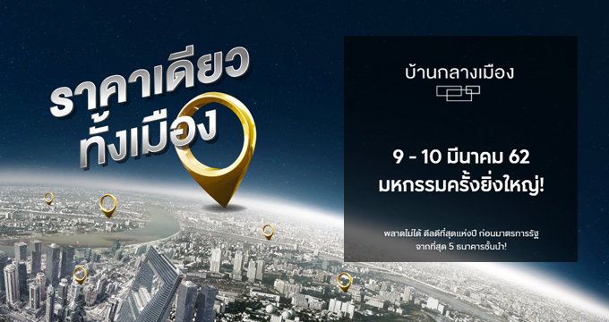 www.areeya.co.th โปรโมชั่น : 9-10 มีนาคม 2562 นี้ มหกรรมครั้งยิ่งใหญ่!! บ้านกลางเมือง ราคาเดียวทั้งเมือง พลาดไม่ได้ ดีลดีที่สุดแห่งปี ก่อนมาตรการรัฐ พร้อมข้อเสนอจาก 5 ธนาคารชั้นนำ ลงทะเบียนรับส่วนลดสูงสุด 100,000 บาท* (สิทธิ์มีจำนวนจำกัด)