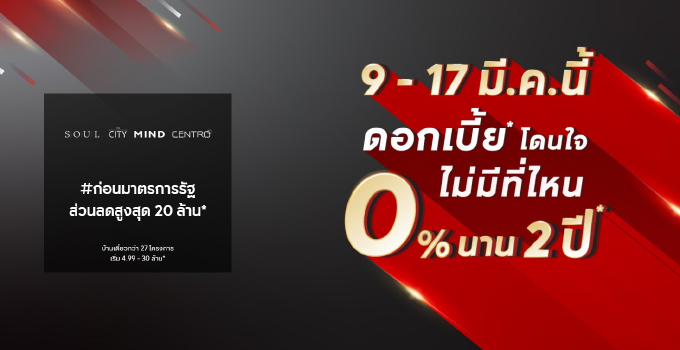 โปรโมชั่น : 9-17 มีนาคม 2562 นี้ ดอกเบี้ยโดนใจ ไม่มีที่ไหน 0% นาน 2 ปี* ก่อนมาตรการรัฐ ส่วนลดสูงสุด 20 ล้าน บ้านเดี่ยว 27 โครงการ เริ่ม 4.99 - 30 ล้านบาท*