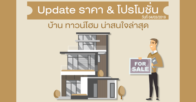 Update ราคา & โปรโมชั่น บ้านทาวน์โฮม น่าสนใจล่าสุด ณ วันที่ 4 มีนาคม 2562