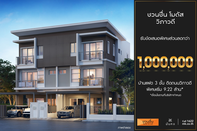 โปรโมชั่น : บ้านแฝด 3 ชั้น ติดถนนวิภาวดี รับข้อเสนอพิเศษส่วนลดกว่า 1,000,000 บาท เริ่ม 9.22 ล้าน