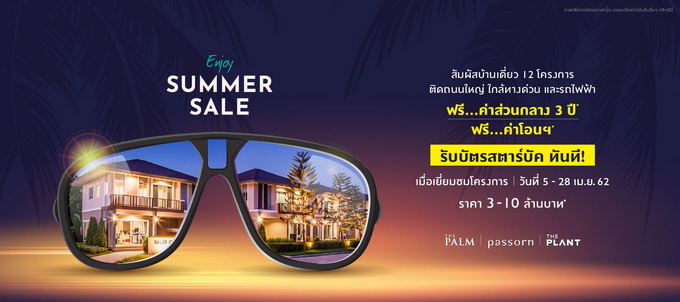 โปรโมชั่น : Enjoy Summer Sale สัมผัสบ้านเดี่ยว 12 โครงการ ติดถนนใหญ่ ใกล้ทางด่วน และรถไฟฟ้า ฟรี! ค่าส่วนกลาง 3 ปี* ฟรี! ค่าโอน* รับบัตรสตาร์บัคส์ทันที! เมื่อเยี่ยมชมโครงการ วันที่ 5 - 28 เมษายน 2562 ราคาเริ่ม 3 - 10 ล้านบาท*