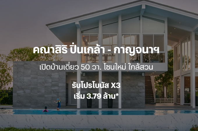 คณาสิริ ปิ่นเกล้า - กาญจนาฯ" เปิดบ้านเดี่ยว 50 ตร.ว. โซนใหม่ ใกล้สวน รับโปรฯ โบนัส X3 ราคาเริ่ม 3.79 ล้านบาท*
