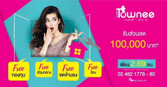 บ้านฟ้า ทาวน์นี่ ปิ่นเกล้า - สาย 5" รับส่วนลด 100,000 บาท* Free กองทุน Free ส่วนกลาง Free จดจำนอง Free โอน เริ่มเพียง 2.69 ล้านบาท