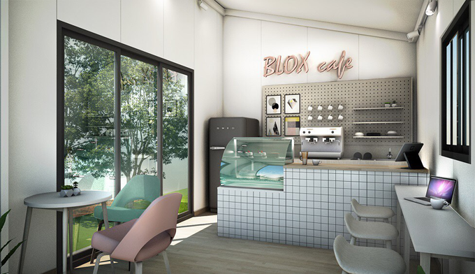 - BLOX Biz ขนาด 15 ตารางเมตร เหมาะสำหรับผู้ประกอบการที่ต้องการสร้างสำนักงาน หรือร้านค้าเล็กๆ เช่น ร้านกาแฟ ฯลฯ บนที่ของตนเอง