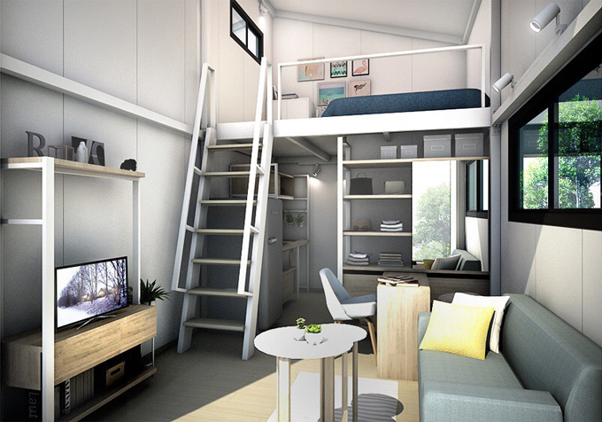 - BLOX Junior ขนาด 25.5 ตารางเมตร สำหรับคนรุ่นใหม่ที่ต้องการใช้ชีวิตอย่างอิสระ สามารถใช้อยู่อาศัยหรือเป็นห้องทำกิจกรรมต่างๆ ส่วนตัวได้