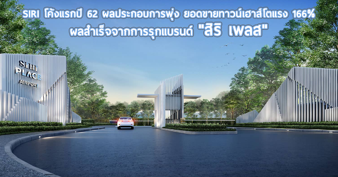 SIRI โค้งแรกปี 62 ผลประกอบการพุ่ง ยอดขายทาวน์เฮาส์โตแรง 166% จากการรุกแบรนด์ "สิริ เพลส"