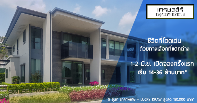 เศรษฐสิริ กรุงเทพกรีฑา 2 ในวันที่ 1-2 มิถุนายน 2562 นี้ โดยมีโปรโมชั่นเฉพาะวันพรีเซลล์ "5 ยูนิต ราคาพิเศษ + Lucky Draw มูลค่าสูงสุด 150,000 บาท" สามารถเยี่ยมชมโครงการได้แล้ววันนี้