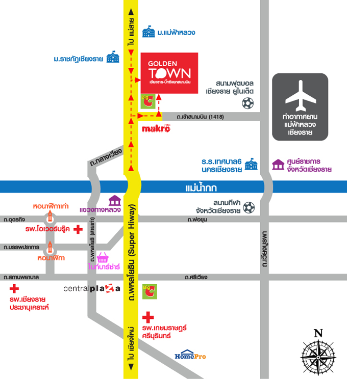 แผนที่ โกลเด้น ทาวน์ เชียงราย-บิ๊กซีแยกสนามบิน