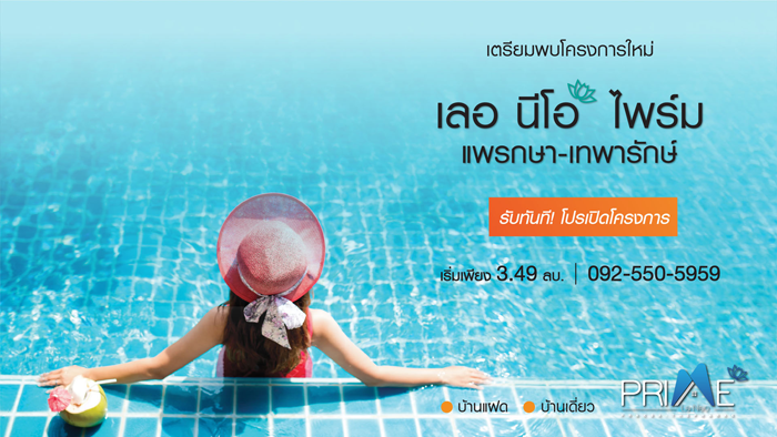 เตรียมพบโครงการใหม่ "เลอ นีโอ ไพร์ม แพรกษา - เทพารักษ์" บ้านเดี่ยว บ้านแฝด เริ่ม 3.49 ลบ. ลงทะเบียนรับสิทธิพิเศษ