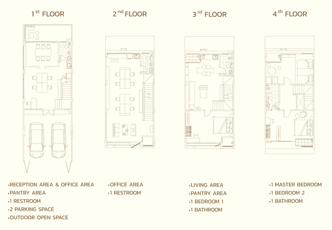 1. Type A - หน้ากว้าง 5 เมตร พื้นที่ใช้สอย 215 ตารางเมตร