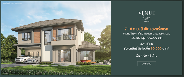 เตรียมพบ "เวนิว โฟลว์ รังสิต" บ้านเดี่ยวโครงการใหม่ Modern Japanese Style เริ่ม 4.99 - 8 ล้าน ลงทะเบียนรับสิทธิพิเศษ*