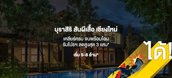 บุราสิริ สันผีเสื้อ เชียงใหม่" เคลียร์ครบ จบพร้อมโอน รับโปรฯ ลดสูงสุด 3 แสน*่ เริ่ม 5-8 ล้านบาท*