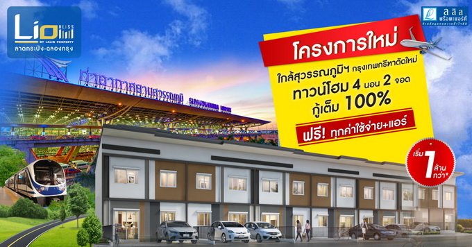 ไลโอ บลิสซ์ ลาดกระบัง-ฉลองกรุง" โครงการใหม่ ใกล้สุวรรณภูมิฯ กรุงเทพกรีฑาตัดใหม่ ทาวน์โฮม 4 ห้องนอน 2 ที่จอดรถ กู้เต็ม 100% ฟรี! ทุกค่าใช้จ่าย+แอร์ เริ่ม 1 ล้านกว่าบาท*