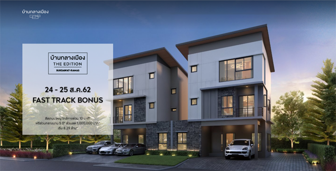 บ้านกลางเมือง The Edition สุขสวัสดิ์ - พระราม 3" 24 - 25 สิงหาคม 2562 นี้ FAST TRACK BONUS เปิดโซนใหม่ #ราคาพิเศษ รับโบนัสพิเศษ 1,000,000 บาท* ฟรีส่วนกลางนาน 5 ปี ขยายความสุขของทุกคนในครอบครัว X-TREND บ้านดีไซน์ใหม่ พร้อมพื้นที่ใช้สอยมากที่สุดในโซน สาทร-สุขสวัสดิ์ พร้อมห้องนอนใหญ่ทุกห้อง ติดถนนใหญ่ ใกล้ทางด่วน 10 นาที* พร้อมเอกสิทธิ์ความเป็นส่วนตัวเพียง 28 ครอบครัว เริ่ม 8.29 ล้าน*