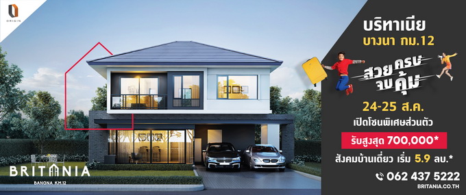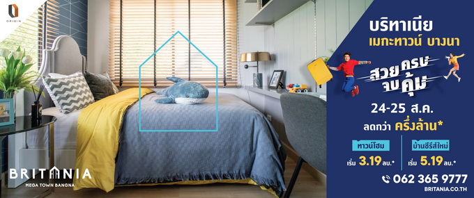 บริทาเนีย เมกะทาวน์ บางนา" สวย ครบ จบ คุ้ม 24 - 25 สิงหาคม 2562 นี้ ลดกว่าครึ่งล้าน* ทาวน์โฮม เริ่ม 3.19 ล้านบาท* บ้านซีรีส์ใหม่ เริ่ม 5.19 ล้านบาท* ทาวน์โฮม-บ้านซีรีส์ใหม่ ใกล้เมกาบางนา - ทางด่วน - รถไฟฟ้า* พร้อมคลับเฮ้าส์สุดหรู และสวนขนาดใหญ่