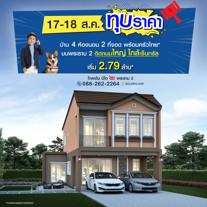 Promotion : 17-18 ส.ค. นี้ ทุบราคาพิเศษ!! เพียง 2.79 ล้าน* บ้านโครงการใหม่ 4 ห้องนอน 3 ห้องน้ำ 2 ที่จอดรถ พร้อมครัวไทย* ทำเลศักยภาพ บนพระราม 2 ติดถนนใหญ่ ใกล้เซ็นทรัล