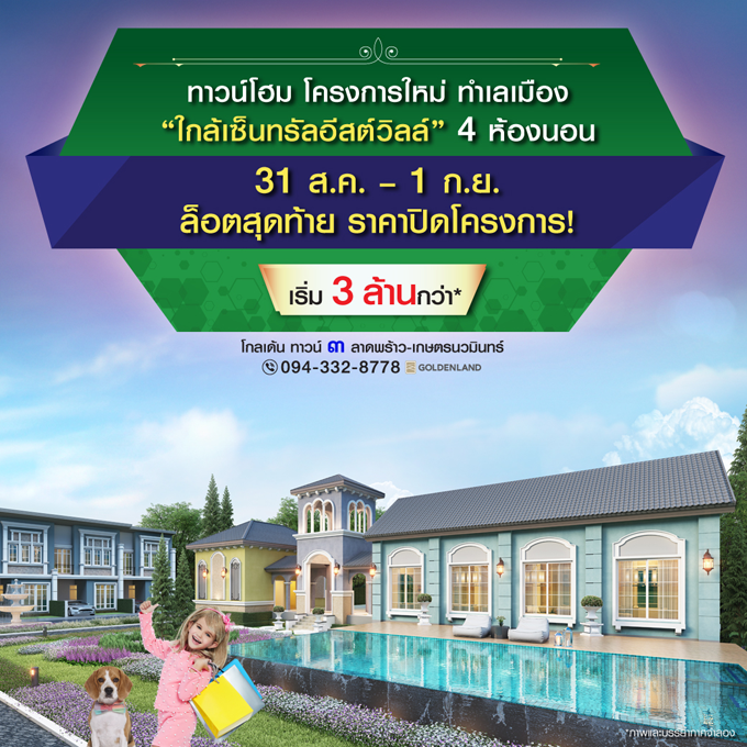Promotion : 31 ส.ค. - 1 ก.ย. นี้ ล็อตสุดท้าย ราคาปิดโครงการ บนถนนเกษตรนวมินทร์ ใกล้เซ็นทรัล อีสต์วิลล์ ทาวน์โฮม 4 ห้องนอน 3 ห้องน้ำ สไตล์อังกฤษ พร้อมสโมสร+โรงหนังส่วนตัว เริ่มต้นเพียง 3 ล้านกว่า*