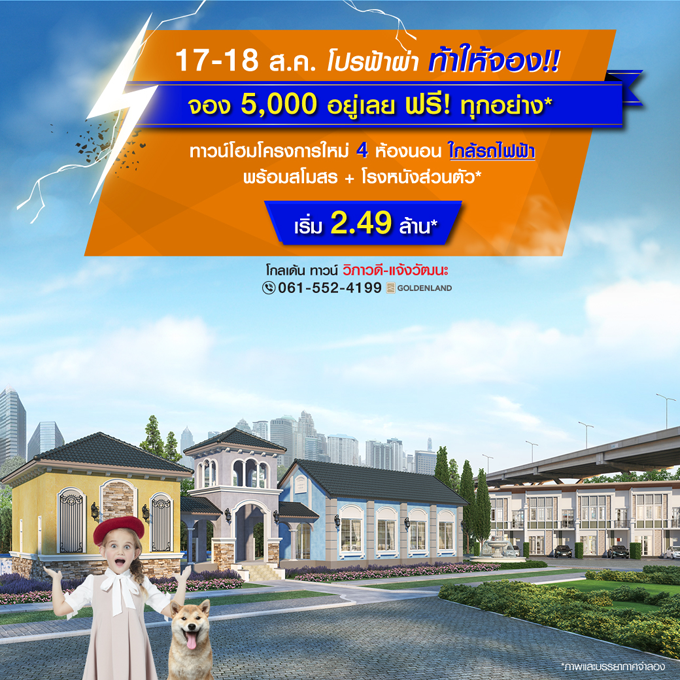 Promotion : 17-18 ส.ค. นี้ โปรฟ้าผ่า ท้าให้จอง! จอง 5,000 อยู่เลย ฟรี! ทุกอย่าง* ทาวน์โฮมโครงการใหม่ ย่านวิภาวดี-แจ้งวัฒนะ ใกล้รถไฟฟ้า+ทางด่วน 4 ห้องนอน พร้อมสโมสร+โรงหนังส่วนตัว เริ่ม 2.49 ล้าน*