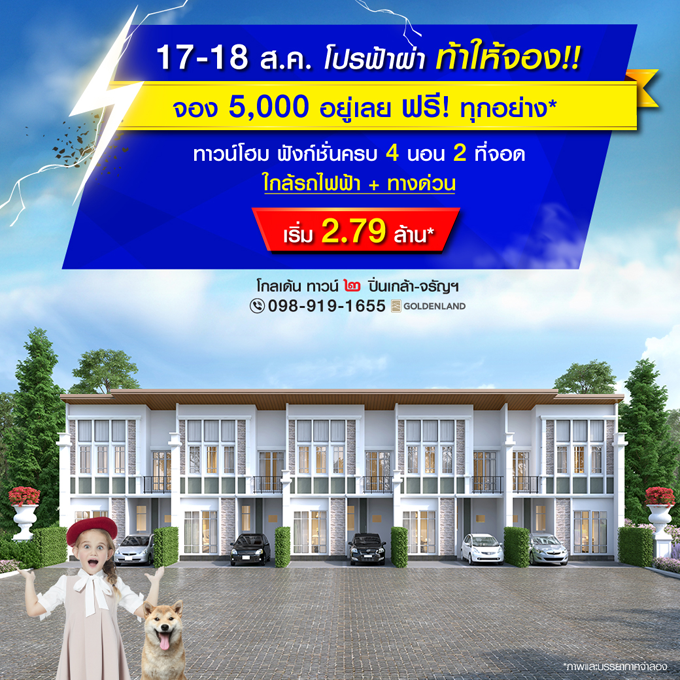 Promotion : 17-18 ส.ค. นี้ โปรฟ้าผ่า ท้าให้จอง!! จอง 5,000 อยู่เลย ฟรี! ทุกอย่าง* ทาวน์โฮมโครงการใหม่ ย่านเพชรเกษม ใกล้เดอะมอลล์+รถไฟฟ้า 4 ห้องนอน 3 ห้องน้ำ อลังการสโมสร+โรงหนังส่วนตัว พร้อมครัวไทยและห้องพระ เริ่ม 1.99 ล้าน*