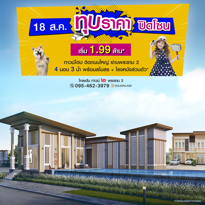 Promotion : 18 ส.ค. นี้ ทุบราคาปิดโซน!! แปลงใหญ่ 4 ห้องนอน 2 ที่จอดรถ* ใกล้ถนนใหญ่พระราม 2 พร้อมสโมสรสุดหรู * จอง 5,000 ลดสูงสุดเฉียดล้าน *เริ่ม 1.99 ล้าน*