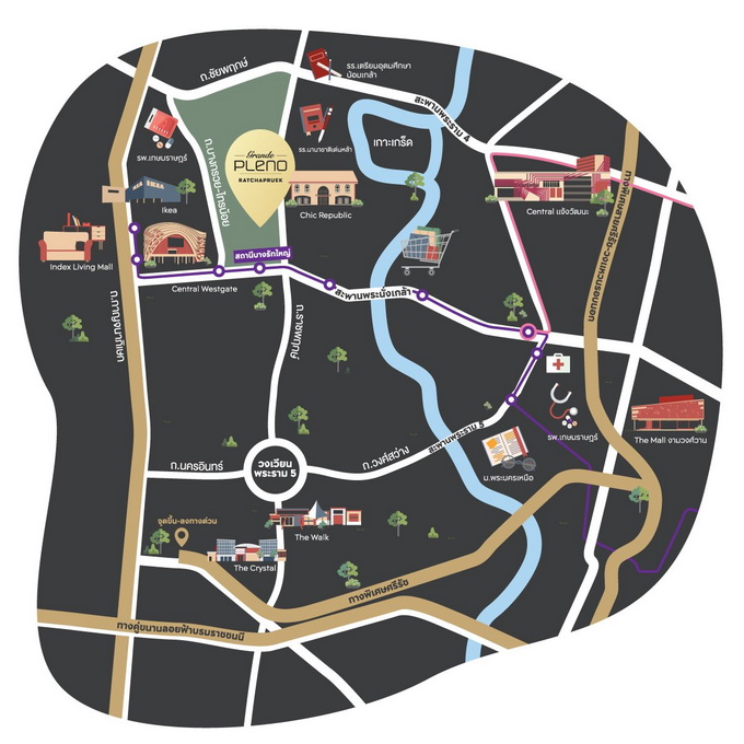 ซึ่งวันนี้เราจะมาพูดถึง GRANDE PLENO ราชพฤกษ์ หนึ่งใน EMPOWER LIVING WITH 6 NEW PROJECTS ทางเอพีการันตีเลยว่านิยามพิมพ์เขียวทั้ง 3 ด้าน ถูกถ่ายทอดออกมาในทุกโครงการเอพี แต่สำหรับที่นี่โดดเด่นที่สุด คือคำว่า Flow เป็นเพราะอะไรไปหาคำตอบพร้อมๆ กัน แต่ก่อนอื่นมาดูแผนที่กันก่อน