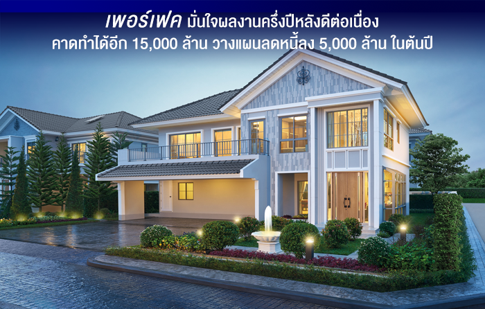 พร็อพเพอร์ตี้ เพอร์เฟค ส่งสัญญาณผลงานครึ่งปีหลังเติบโตต่อเนื่อง คาดจะทำได้อีก 15,000 ล้าน รวมรายได้ปีนี้แตะ 25,000 ล้าน จากผลการดำเนินงานที่ดี ขายที่ดินและเงินลงทุน วางเป้าหมายลดหนี้ลง 5,000 ล้าน ภายในต้นปี 2563นางสาวศิริรัตน์ วงศ์วัฒนา ประธานเจ้าหน้าที่กลุ่มการเงิน บริษัท พร็อพเพอร์ตี้ เพอร์เฟค จำกัด (มหาชน) เปิดเผยว่า แผนการดำเนินงานในช่วงครึ่งปีหลังของปี 2562 บริษัทฯ จะทำรายได้เติบโตต่อเนื่องจากครึ่งปีแรก คาดว่าจะทำรายได้รวมอีก 15,000 ล้านบาท เพิ่มขึ้นจากครึ่งปีแรกที่มีรายได้รวม 10,000 ล้านบาท ส่งผลให้รายได้ปีนี้จะอยู่ที่ 25,000 ล้านบาท