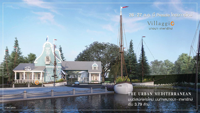 วิลลาจจิโอ บางนา - เทพารักษ์ (Villaggio Bangna - Theparak)" ในวันที่ 26 - 27 ตุลาคม 2562 นี้ โครงการใหม่ล่าสุดมนต์เสน่ห์แห่งใหม่ บนทำเลบางนา-เทพารักษ์ ด้วยพื้นที่โครงการ 63 ไร่ จำนวน 342 ยูนิต กับแบบบ้านเดี่ยว 2 ชั้น พื้นที่ใช้สอยตั้งแต่ 134 ตร.ม. บนขนาดที่ดินตั้งแต่ 50 ตร.ว. ขึ้นไป และบ้านคู่ 2 ชั้น พื้นที่ใช้สอยตั้งแต่ 133 ตร.ม. บนขนาดที่ดินตั้งแต่ 35 ตร.ว. ขึ้นไป