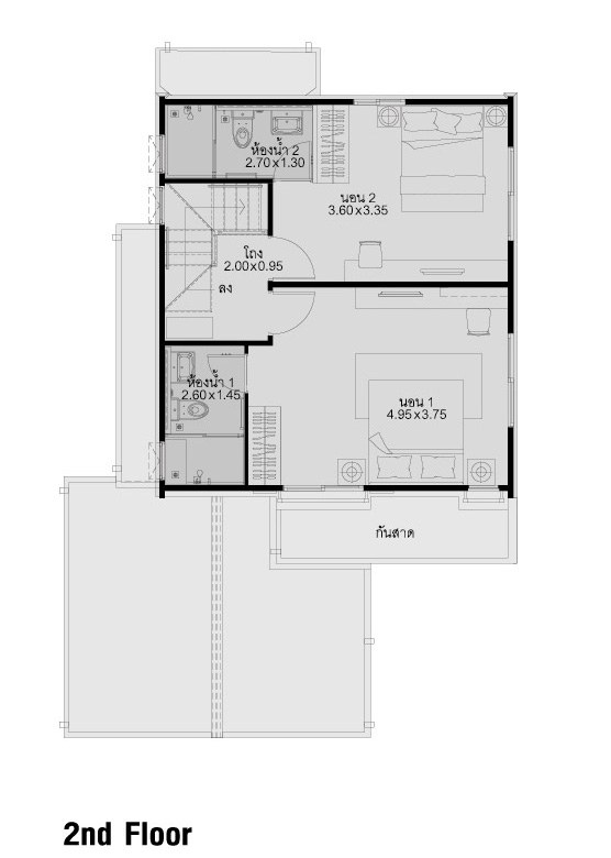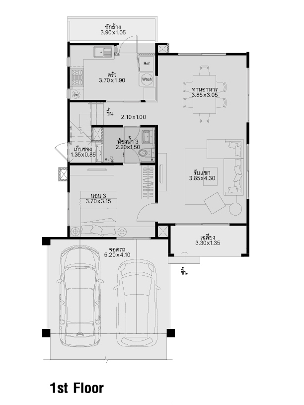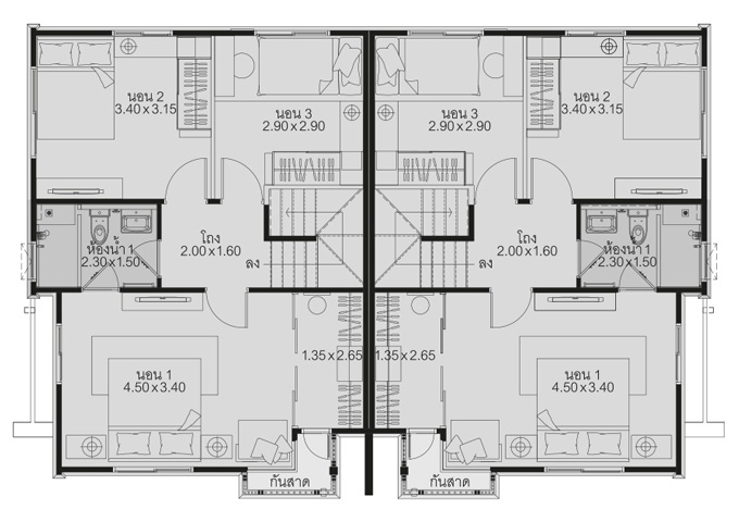 1. แบบบ้าน Shuttery บ้านคู่ 2 ชั้น พื้นที่ใช้สอย 133 ตร.ม. ขนาดที่ดิน 35 ตร.ว. 3 ห้องนอน 2 ห้องน้ำ ที่จอดรถ 2 คัน