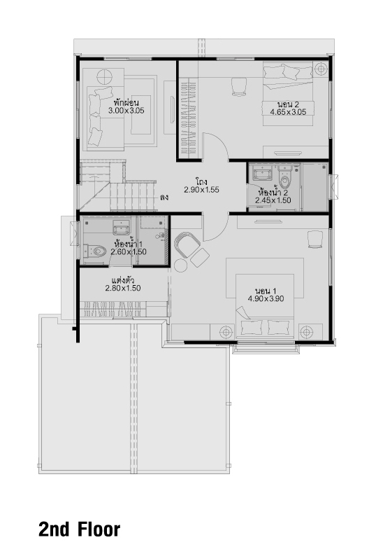 3. แบบบ้าน Panesy S บ้านเดี่ยว 2 ชั้น พื้นที่ใช้สอย 161 ตร.ม. ขนาดที่ดิน 63 ตร.ว. 3 ห้องนอน 3 ห้องน้ำ ห้องพักผ่อนชั้นบน 1 ห้อง ที่จอดรถ 2 คัน
