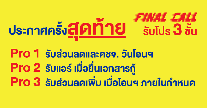 - โปร 3 รับส่วนลดเพิ่มเมื่อโอนกรรมสิทธิ์ภายในเวลาที่กำหนด