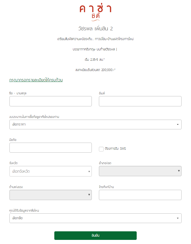 ท่านที่สนใจสามารถลงทะเบียนรับสิทธิพิเศษ ส่วนลด 200,000 บาท ได้ที่ลิงก์ด้านล่างนี้สอบถามรายละเอียดเพิ่มเติมได้ที่ 1388 เว็บไซต์ Q House : http://www.qh.co.thแท็กที่เกี่ยวข้อง :