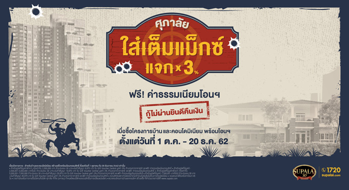 www.goldenland.co.th โปรโมชั่น: ศุภาลัย ใส่เต็มแม็กซ์ แจกคูณ 3%* ฟรี! ค่าธรรมเนียมโอนฯ กู้ไม่ผ่านยินดีคืนเงิน เมื่อซื้อโครงการบ้าน และคอนโดมิเนียม พร้อมโอน ตั้งแต่วันที่ 1 ตุลาคม - 20 ธันวาคม 2562