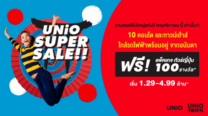 www.areeya.co.th โปรโมชั่น: UNiO SUPERSALE 10 คอนโดและทาวน์เฮ้าส์ ใกล้รถไฟฟ้าพร้อมอยู่ จากยูนิโอ เริ่ม 1.29 - 4.99 ล้าน รับฟรีแพ็กเกจทัวร์ญี่ปุ่น 100 รางวัล มูลค่ากว่า 3,000,000 บาท