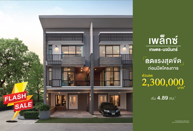 "เพล็กซ์ เกษตร - นวมินทร์" ทาวน์โฮม 3 ชั้น ลดแรงสุดขีด ก่อนปิดโครงการ ส่วนลด 2,300,000 บาท* ราคาเริ่ม 4.89 ล้านบาท*