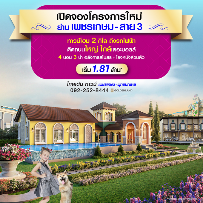 Promotion : ช็อคแรง! 16-24 พ.ย. นี้ #โปรแรงแห่งปี ทาวน์โฮมโครงการใหม่ ย่านเพชรเกษม-สาย 3 สุดยอดทำเลทอง 2 กิโล ถึงรถไฟฟ้า ติดถนนใหญ่+ใกล้เดอะมอลล์ มาพร้อมฟังก์ชัน 4 ห้องนอน 3 ห้องน้ำ อลังการสโมสร+โรงหนังส่วนตัว พร้อมสวนสวยรอบโครงการ เริ่ม 2.39 ล้าน*สอบถามข้อมูลเพิ่มเติม โทร. 092-252-8444