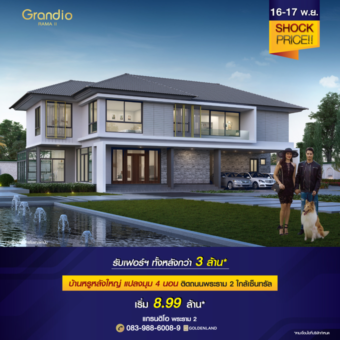 Promotion : 16-17 พ.ย. GRAND OPENING โซนสโมสร "แกรนดิโอ บางแค" บ้านเดี่ยวสุดหรู แต่งครบ พร้อมอยู่ ฟรี ค่าใช้จ่ายโอน* โปรฯ จัดเต็ม สูงสุดกว่า 3 ล้าน* เดินทางสะดวก ใกล้เดอะมอลล์ บางแค+รถไฟฟ้า เริ่ม 8-15 ล้าน*สอบถามข้อมูลเพิ่มเติม โทร. 094-458-7171