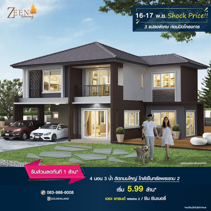 Promotion : 16-17 พ.ย. Shock Price - 3 แปลงพิเศษ ก่อนปิดโครงการ!! จองภายในงาน รับส่วนลดทันที 1 ล้าน* บ้านพร้อมอยู่ ฟังก์ชันจัดเต็ม 4 ห้องนอน 3 ห้องน้ำ 2 ที่จอดรถ เดินทางสะดวก ติดถนนใหญ่ ใกล้เซ็นทรัลพระราม 2 เริ่มเพียง 5.99 ล้าน*สอบถามข้อมูลเพิ่มเติม โทร. 083-988-6008 ถึง 9