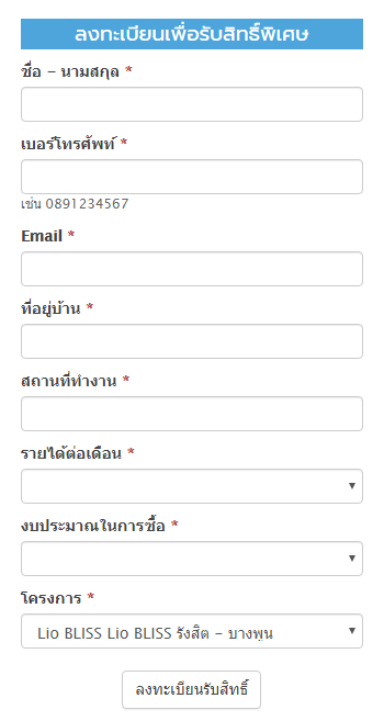 ไลโอ บลิสซ์ รังสิต - บางพูน (Lio Bliss Rangsit-Bangpoon) เตรียมพบโครงการใหม่ เร็วๆ นี้ บนทำเลดีสุด รังสิต - บางพูน เพียง 2 นาทีจากทางด่วน* ใกล้ ฟิวเจอร์ รังสิต พบกับทาวน์โฮม 4 ห้องนอน ท่านที่สนใจสามารถลงทะเบียนได้ที่เว็บไซต์ของ ลลิล พร็อพเพอร์ตี้ราคาเริ่มที่ 1 ล้านกว่า*ท่านที่สนใจสามารถลงทะเบียนเพื่อรับสิทธิพิเศษได้ที่นี่*เงื่อนไขเป็นไปตามที่บริษัทฯ กำหนดสอบถามรายละเอียดเพิ่มเติม โทร 1778 เว็บไซต์ www.lalinproperty.comข่าว-โปรโมชั่นล่าสุดอื่นๆ