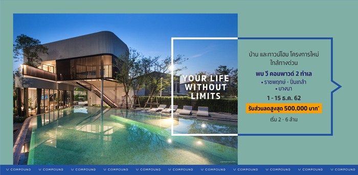 บ้านและทาวน์โฮมใหม่ "วี คอมพาวด์" 2 ทำเล ลงทะเบียนรับส่วนลดสูงสุด 500,000 บาท