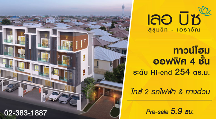 23 ธ.ค. 62 576"เลอ บิซ สุขุมวิท-เอราวัณ" ทาวน์โฮม ออฟฟิศ 4 ชั้น ระดับ Hi-end Pre-sale เริ่ม 5.9 ล้านบาท