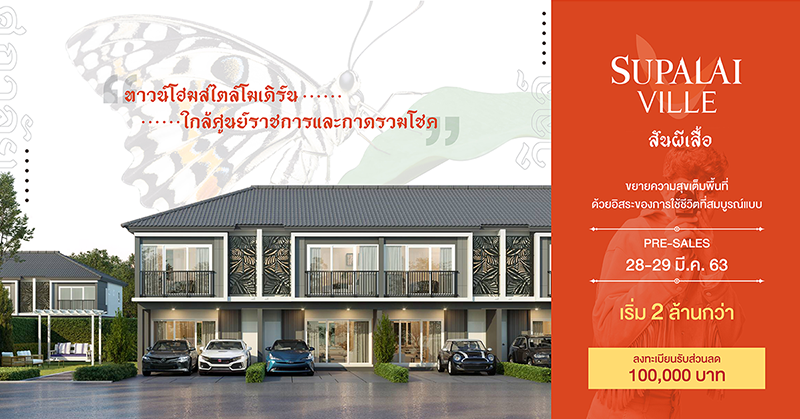 "ศุภาลัย วิลล์ สันผีเสื้อ" ทาวน์โฮมสไตล์โมเดิร์น ใกล้ศูนย์ราชการและกาดรวมโชค Presales วันที่ 28-29 มี.ค. นี้ เริ่ม 2 ล้านกว่า