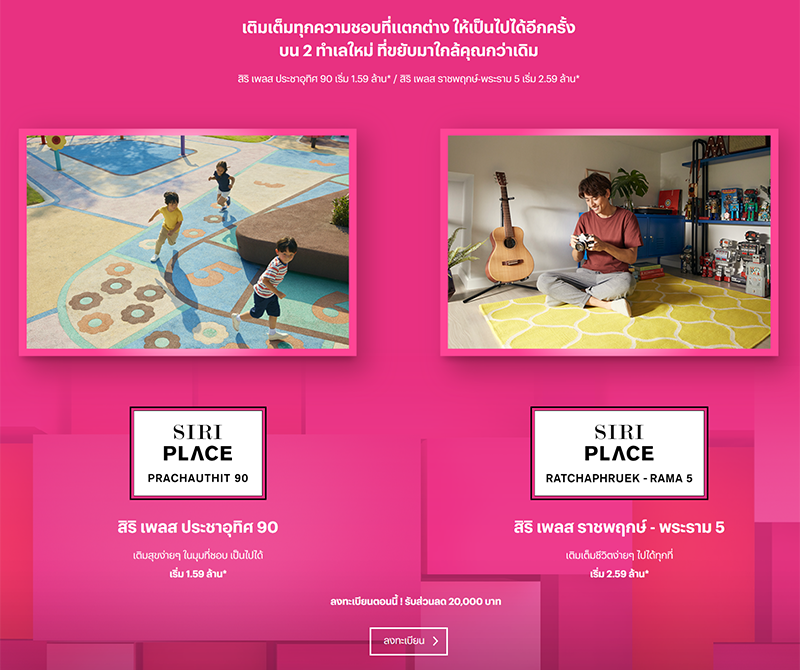 เตรียมพบกับทาวน์โฮมบน 2 ทำเลคุณภาพ "ประชาอุทิศ 90" และ "ราชพฤกษ์ - พระราม 5" ทาวน์โฮมใหม่จาก บริษัท แสนสิริ จำกัด (มหาชน) ภายใต้แบรนด์ "สิริ เพลส" ที่จะมาเติมเต็มทุกความชอบที่แตกต่าง ให้เป็นไปได้อีกครั้ง บน 2 ทำเลใหม่ ที่ขยับมาใกล้คุณกว่าเดิม พบกันเร็วๆ นี้- สิริ เพลส ประชาอุทิศ 90 (Siri Place Pracha uthit 90) เริ่มต้น 1.59 ล้านบาท*
