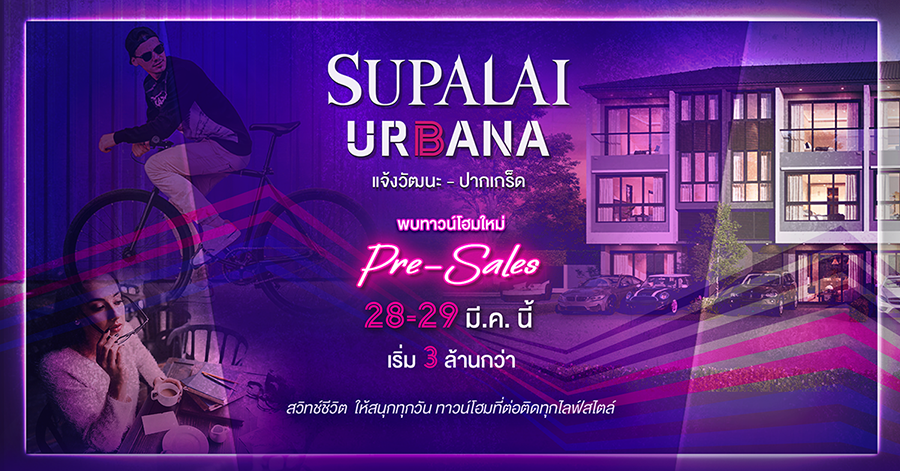 "ศุภาลัย เออร์บานา แจ้งวัฒนะ - ปากเกร็ด" ทาวน์โฮม 3 ชั้น บนทำเลศักยภาพ พบกัน 28-29 มี.ค. นี้ เริ่ม 3 ล้านกว่า