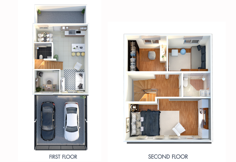 1) แบบบ้าน CHERISH - ทาวน์โฮม 2 ชั้น พื้นที่ใช้สอยกว้างขวาง 125* ตร.ม. 4 ห้องนอน 2 ห้องน้ำ 1 ห้องรับแขก ส่วนเตรียมอาหาร ที่จอดรถ 2 คัน