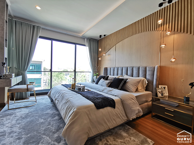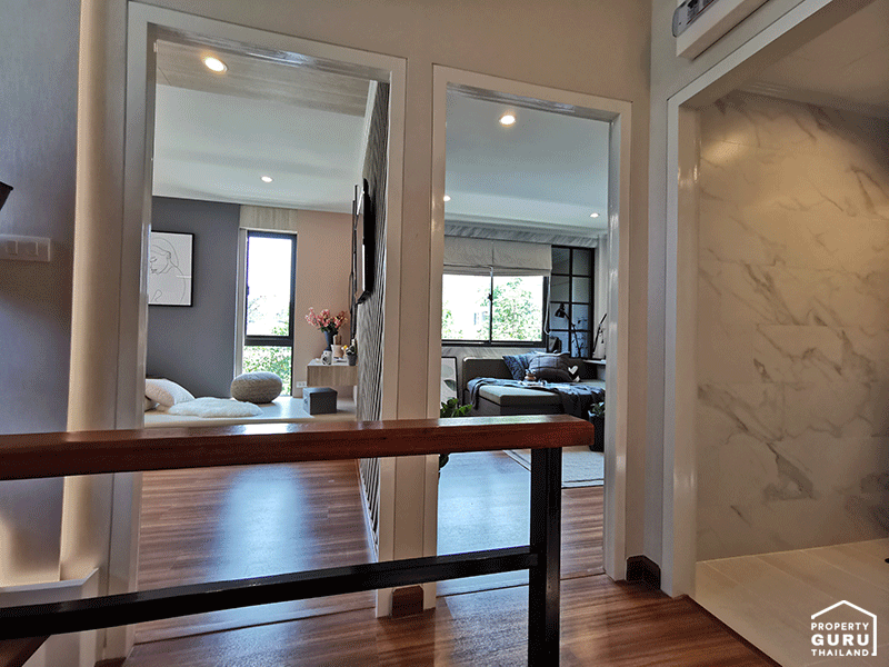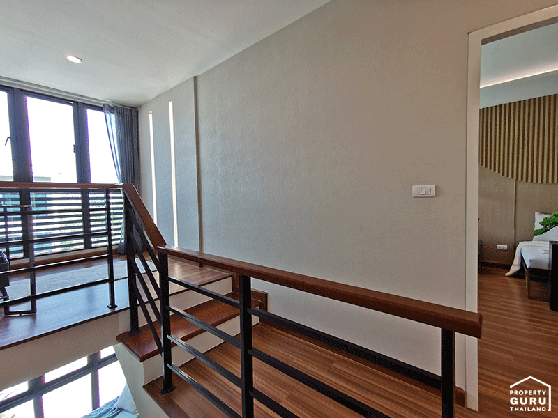 แบบบ้าน ศุภนรา - ทาวน์โฮม 3 ชั้น สไตล์โมเดิร์น โชว์จุดเด่นด้วยพื้นที่อเนกประสงค์พิเศษบริเวณชานพักบันไดขนาดใหญ่ ในชั้นที่ 2 และชั้นลอยของโถงบันไดชั้น 3 ที่สามารถเปิดกว้างให้สร้างสรรค์ไลฟ์สไตล์ที่เป็นตัวเองได้ ห้อง Master Bedroom มอบความเป็นส่วนตัวเต็มพื้นที่ชั้น 3 ทั้งยังออกแบบให้มีช่องเปิดขนาดใหญ่ เพิ่มพื้นที่รับแสงธรรมชาติ และระบายอากาศได้มากกว่าเมื่อเทียบกับทาวน์โฮมทั่วไป มาพร้อมกับหน้าบ้านกว้าง 5.7 เมตร ที่สามารถออกแบบพื้นที่ใช้สอยได้อย่างคุ้มค่าทุกตารางเมตร