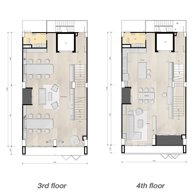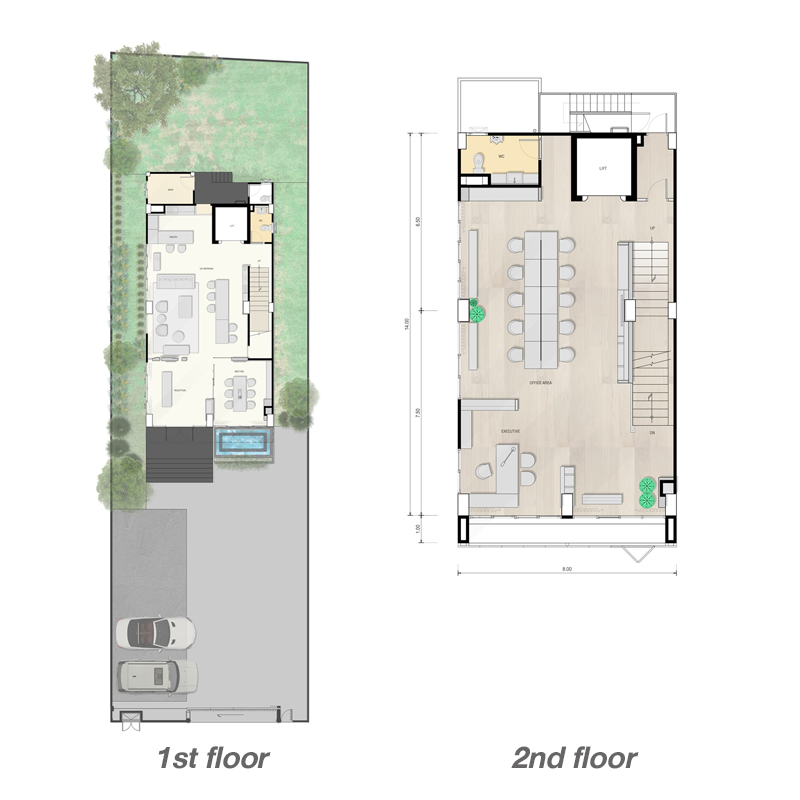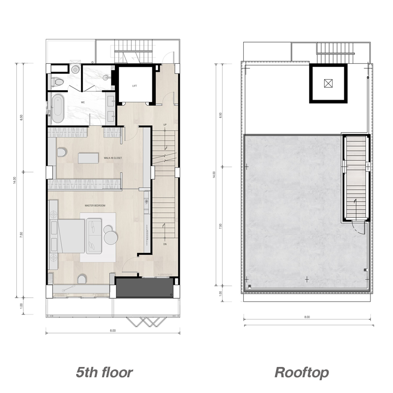 แบบบ้านเป็นโฮมออฟฟิศ 5 ชั้น หน้ากว้าง 12.5 เมตร ที่ดินมาตรฐาน 130.80 - 137.90 ตร.ว. พื้นที่ใช้สอย 679 ตร.ม. พื้นที่อเนกประสงค์ 4 ชั้น 1 ห้องนอน 5 ห้องน้ำ ที่จอดรถ 11 คัน ความสูงจากพื้นถึงฝ้าชั้น 1,4 สูง 2.80 เมตร / ชั้น 2,3,5 สูง 2.50 เมตร