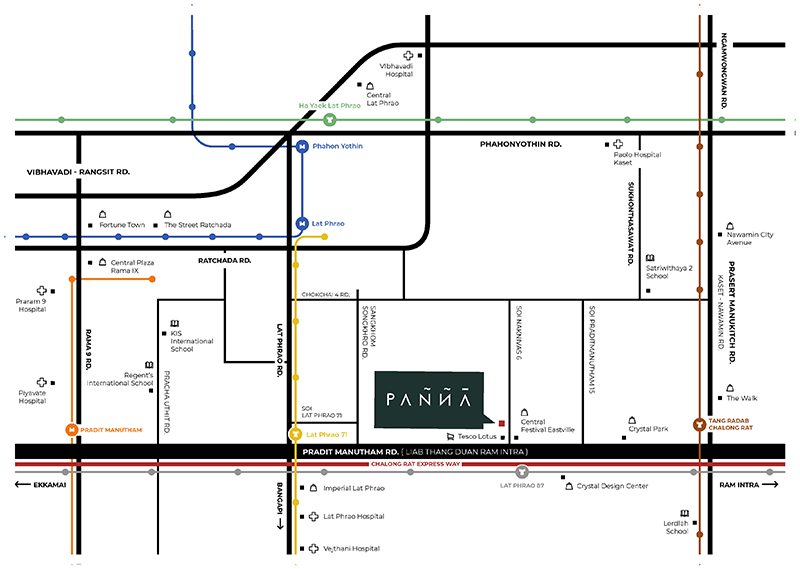 โครงการตั้งอยู่บนถนนประดิษฐ์มนูธรรม แขวงลาดพร้าว เขตลาดพร้าว กรุงเทพฯ ทำเลใจกลางเมืองติด Central Festival East Ville เดินทางสะดวก เข้า - ออกได้หลายช่องทาง ใกล้ทางด่วน รามอินทรา-อาจณรงค์